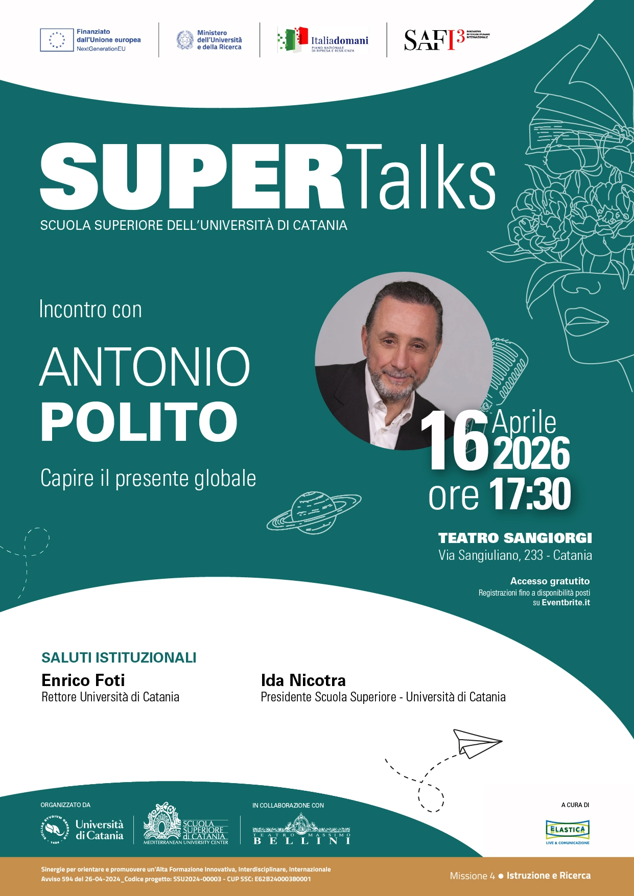 Catania, 24 marzo 2026 – La Scuola Superiore di Catania è lieta di annunciare il prossimo appuntamento con i SuperTalks, il ciclo di incontri dedicato al confronto con protagonisti del mondo della cultura, del giornalismo e delle istituzioni.