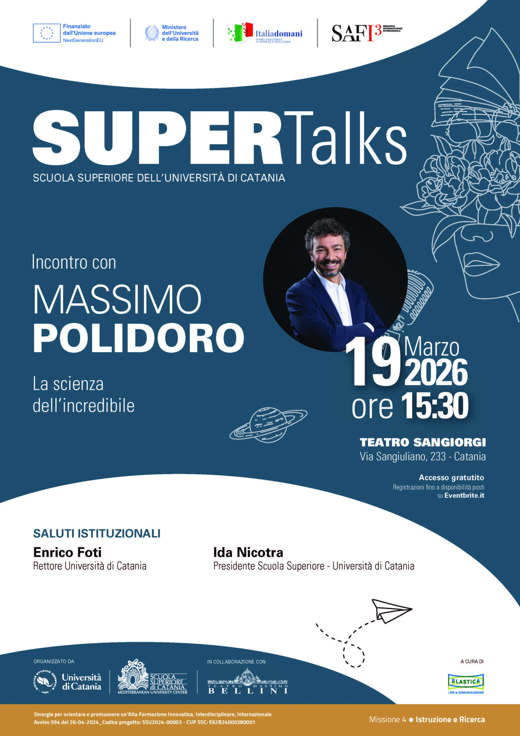 L’incontro con Massimo Polidoro si inserisce nel programma dei SuperTalks di Catania, rassegna dedicata alla divulgazione, all’innovazione e alla cultura contemporanea, con l’obiettivo di stimolare curiosità, confronto e spirito critico.