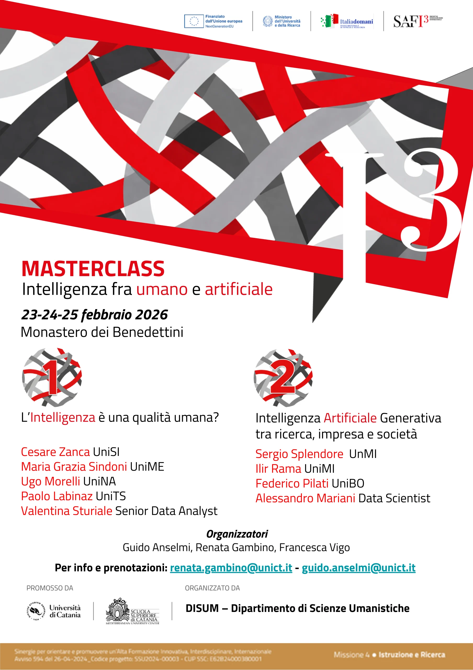 Per info e prenotazioni: renata.gambino@unict.it – guido.anselmi@unict.it