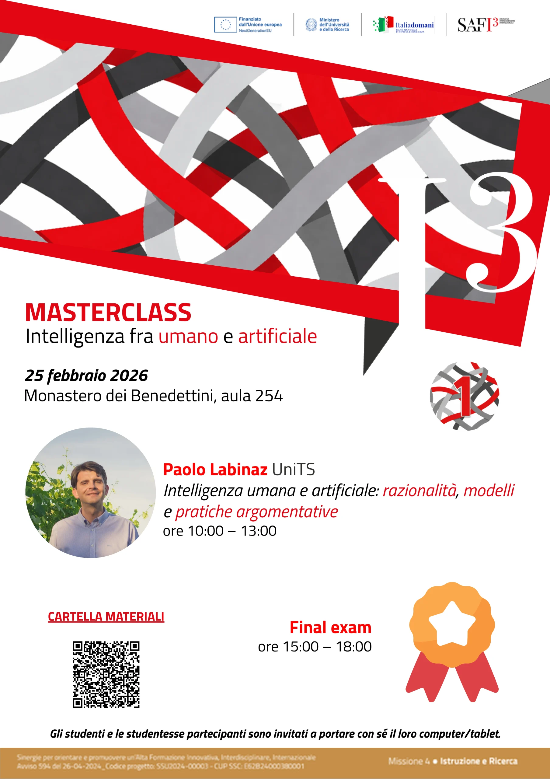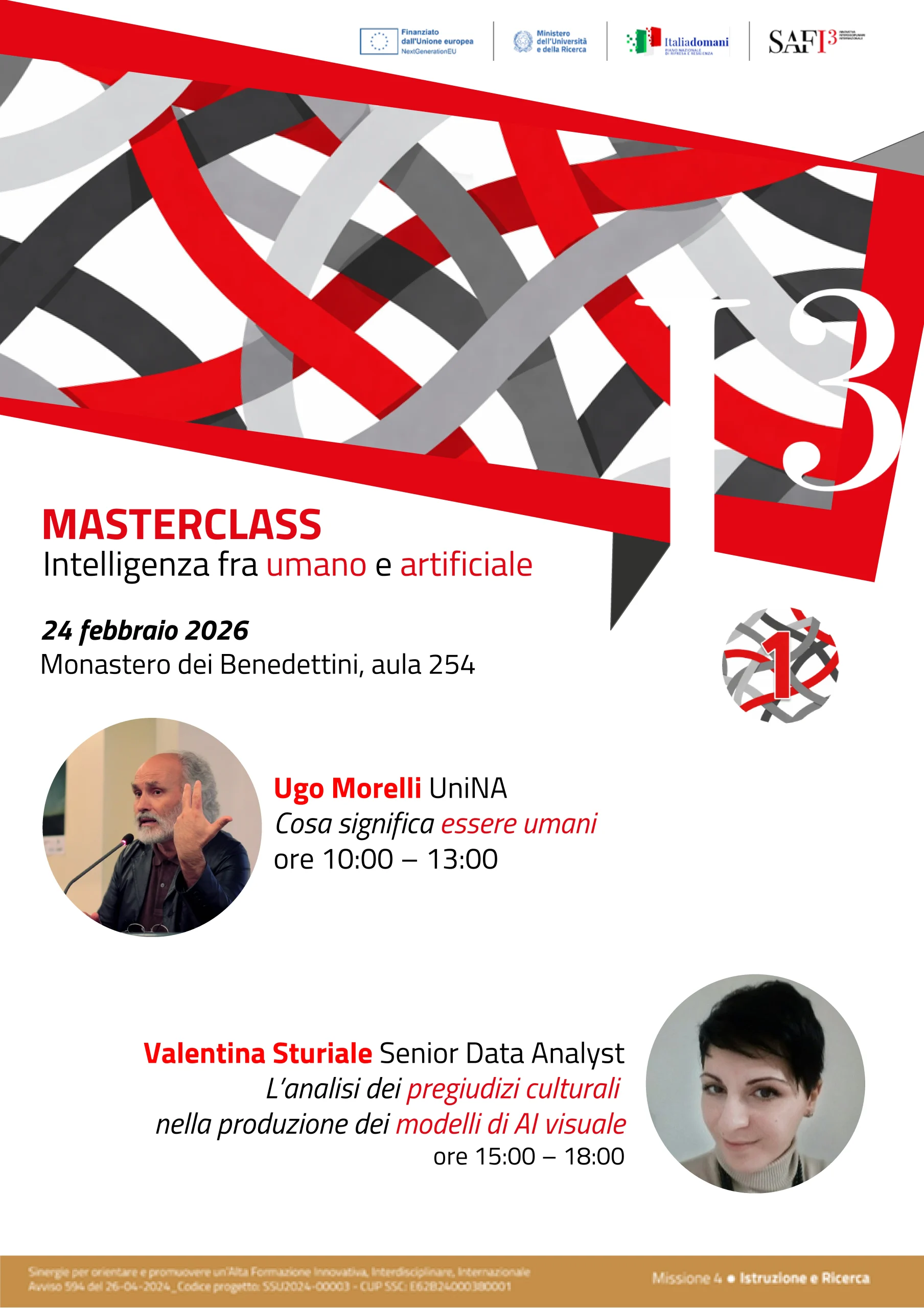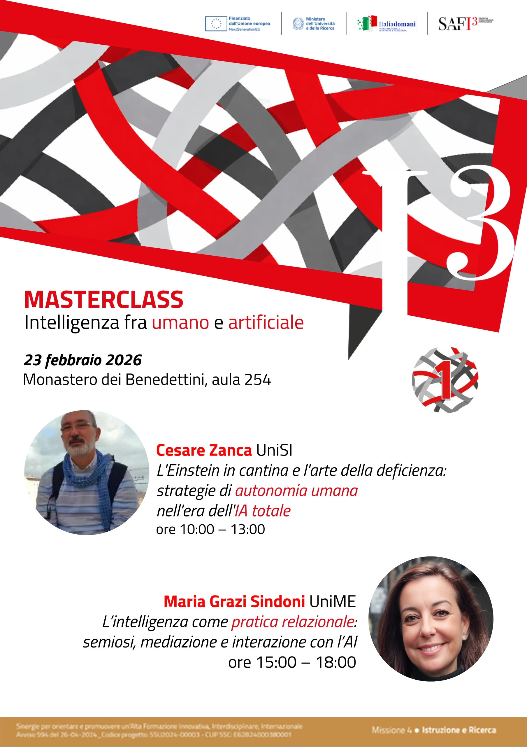 L’evento ricade nell’ambito del progetto SAFI3 – Sinergie per orientare e promuovere un’Alta Formazione Innovativa, Interdisciplinare, Internazionale – Avviso 594 del 26-04-2024_Codice progetto: SSU2024-00003 – CUP SSC: E62B24000380001