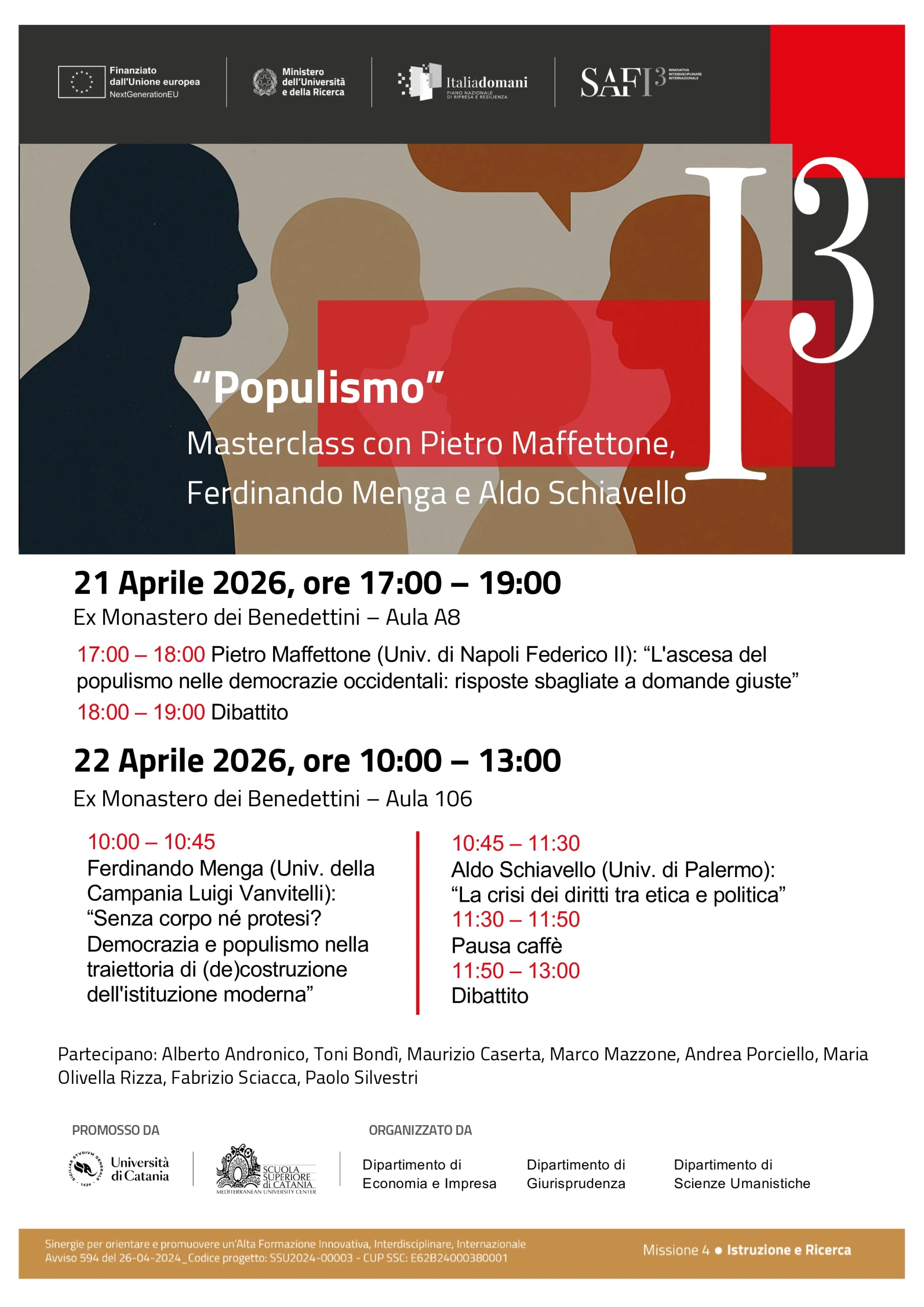 Il 21 aprile dalle 17:00 alle 19:00, in aula A8, il prof. Pietro Maffettone (Univ. di Napoli Federico II) parlerà di “L’ascesa del populismo nelle democrazie occidentali: risposte sbagliate a domande giuste”.